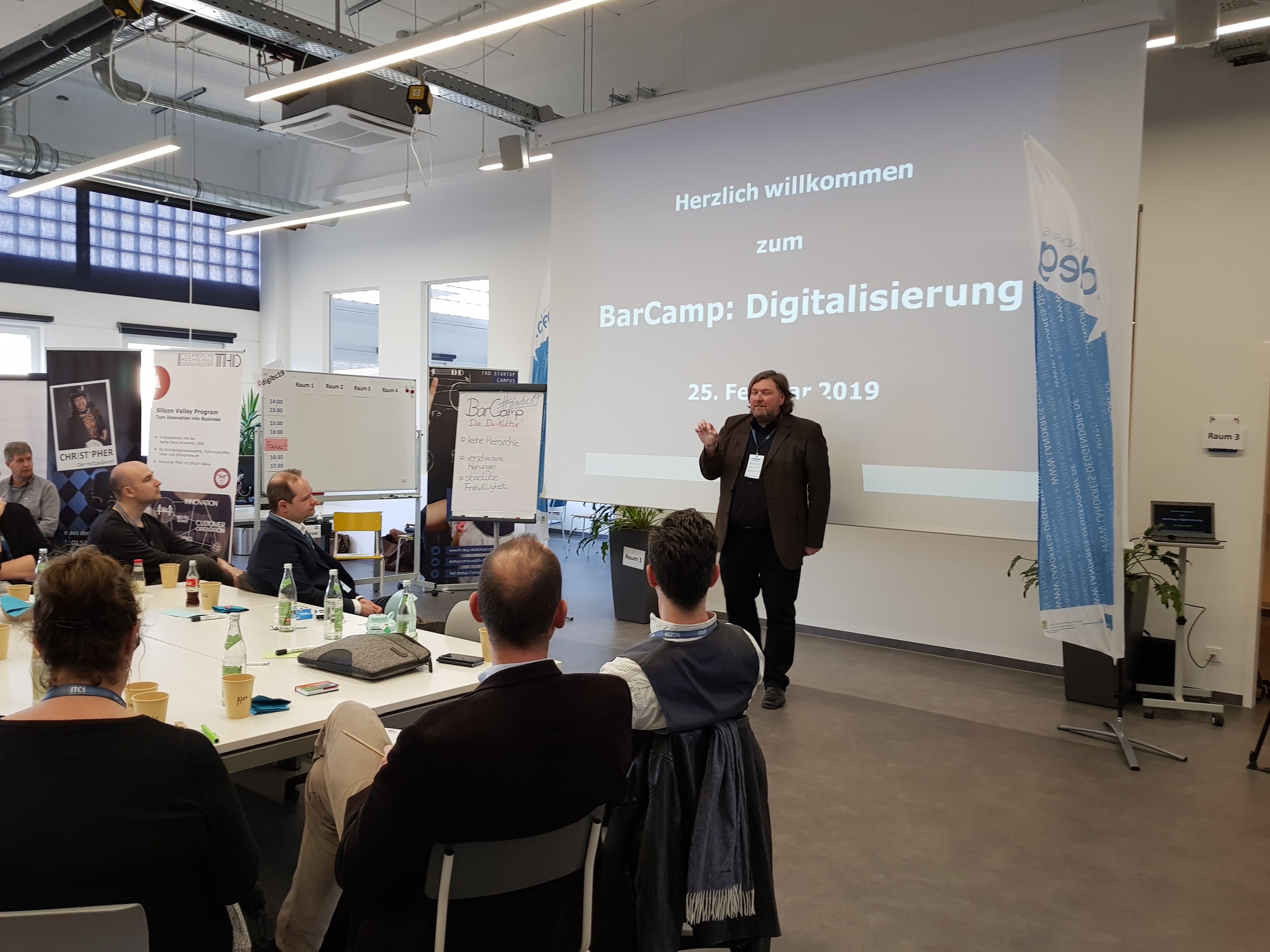 Das Barcamp – ein neues Format, das in der Region noch nicht überaus bekannt war. Dies zeigten die Reaktionen auf die erste Frage von Moderator Markus Reimer „Wer war denn noch nie auf einen BarCamp?“ Sofort gingen jede Menge Hände der über 80 Teilnehmer in die Höhe. „Ziel eines BarCamps ist es, die Pause zum Programm zu machen. Einfacher gesagt: Wir diskutieren in gemütlicher Atmosphäre über ein Thema und jeder kann etwas dazu beitragen – getreu dem Motto „geplant ungeplant““, führte Reimer auf die Veranstaltung ein. „Ganz wichtig dabei sind ein paar Festlegungen zu Beginn der Veranstaltung: wir duzen uns, um unnötige Hierarchien von vornherein zu vermeiden. Dadurch fällt es auch leichter, unterschiedliche Meinungen zuzulassen. Und es gilt absolute Freiwilligkeit- wenn eine Session die Erwartungen nicht erfüllt- einfach wechseln oder die eigenen Wünsche ganz konkret einbringen“.