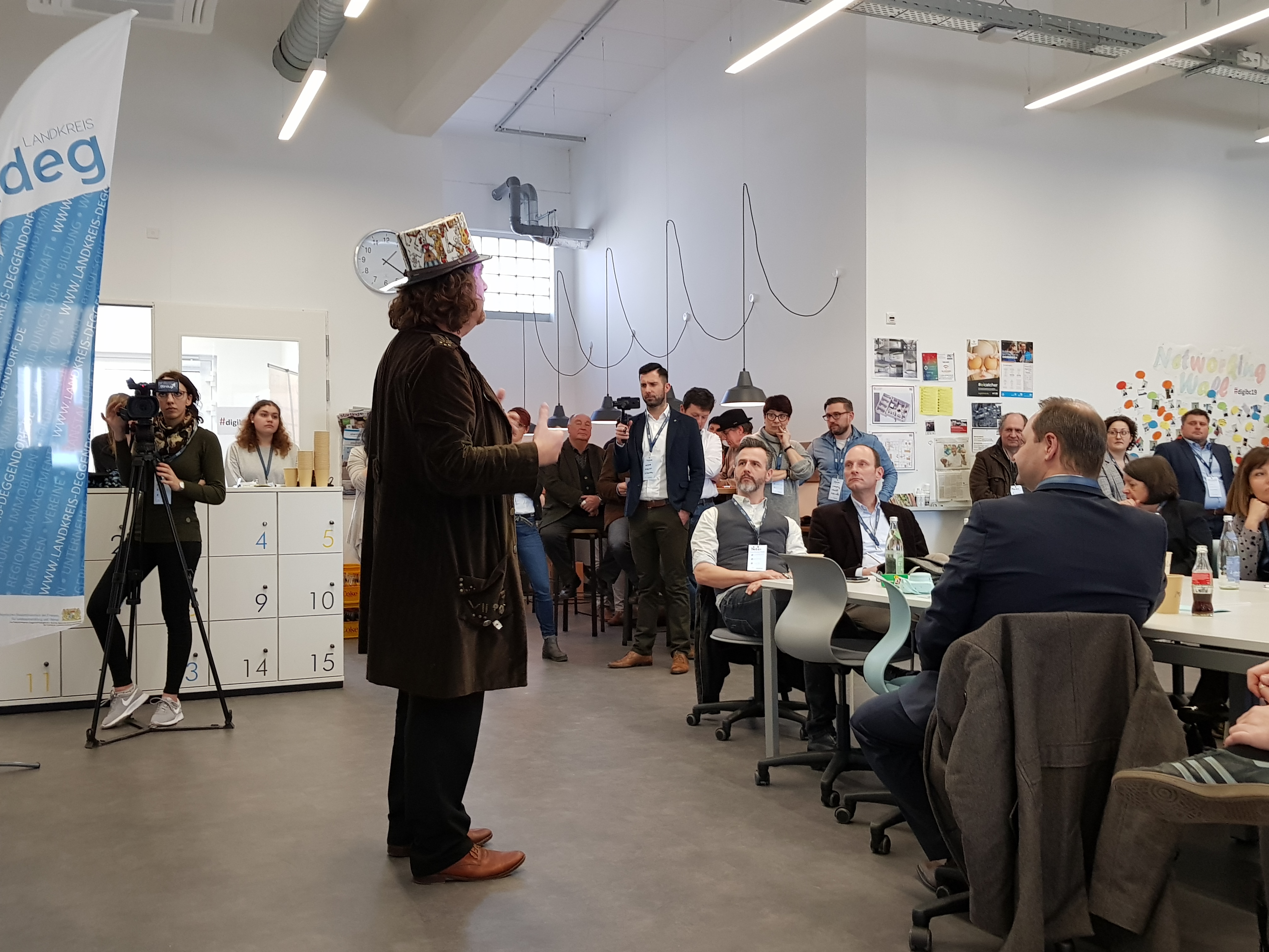 Nach einer kurzen Begrüßung durch Stv. Landrat Josef Färber und einer kleinen Vorstellungsrunde, ging man zu den sog. Pitches über. Jede(r) Teilnehmende konnte seinen Vorschlag für eine Session vorstellen. Anschließend wurde unter den Teilnehmern abgefragt, ob dies von Interesse ist. Am Schluss einigte man sich auf 11 Sessions mit den unterschiedlichsten Themenbereichen entschieden. So z.B. wurde in einem Raum über Podcasts gesprochen, während sich die Teilnehmer/-innen nebenan über künstliche Intelligenz oder Digitalisierung in Schulen austauschten. Jeder durfte selbst entscheiden, welche Sessions er besucht. Ein BarCamp ist somit vielfältig und bietet unzählige Möglichkeiten. Es sind verschiedene Meinungen erlaubt, die Gäste stammen aus den unterschiedlichsten Organisationen und alle möglichen Altersklassen sind vertreten. So nahmen beispielsweise sowohl Geschäftsführer von Firmen aus der Region als auch Schüler/-innen der Realschule Schöllnach an der Veranstaltung teil. Zwischendurch hat Christopher, der Hofzauberer, die Gäste mit mehreren unterhaltsamen Tricks verzaubert und für gute Stimmung in den Pausen gesorgt. Außerdem wurden die Gäste mit köstlichen Snacks versorgt. Im Anschluss an die letzten Sessions zog Dr. Markus Reimer ein kurzes Fazit und machte auf die Möglichkeiten aber auch die Gefahren der Digitalisierung aufmerksam. Als Abschluss der gelungenen Veranstaltung konnten sich alle bei Pizza und Bier weiter austauschen und den Tag ausklingen lassen.