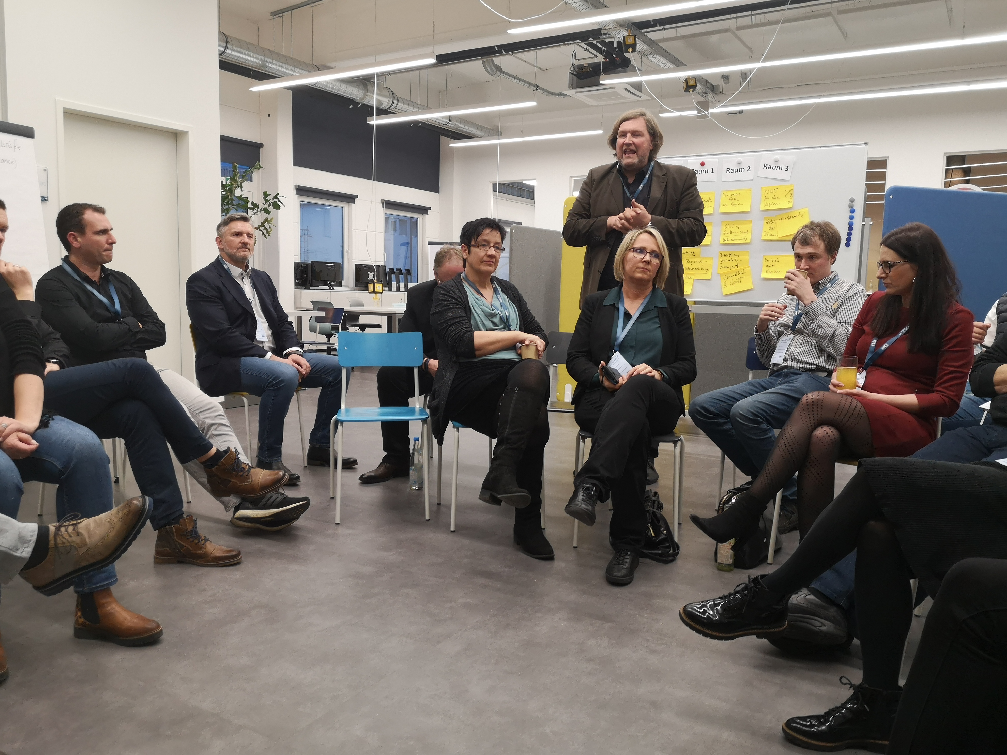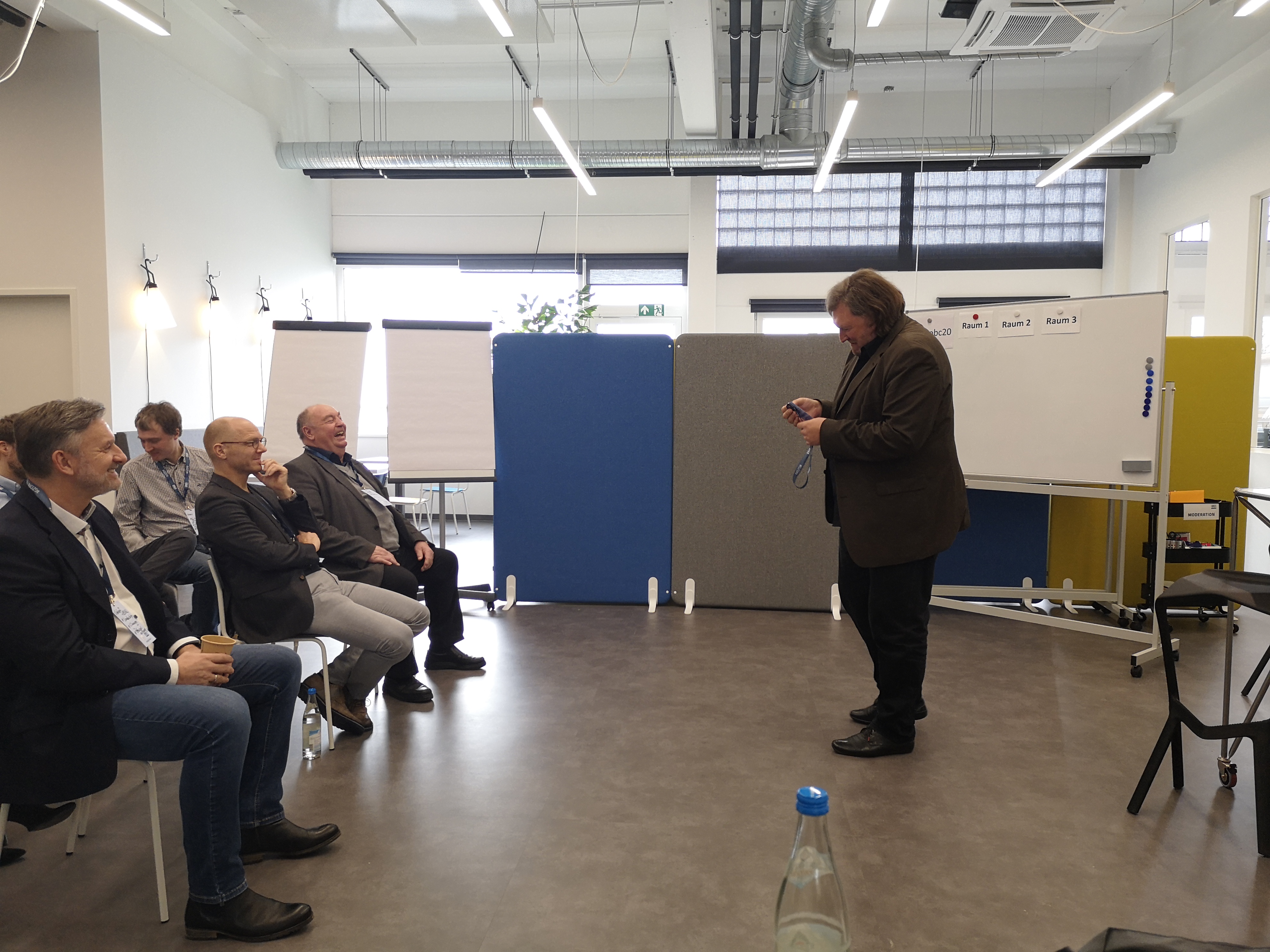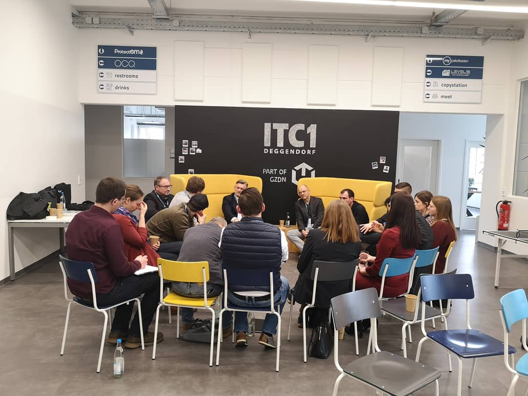 Nach einem kurzen Empfang im ITC 1 und einem kleinen Suppenimbiss ging es auch schon los. Der Geschäftsführer des ITC, Thomas Keller sowie der stellvertretende Landrat Josef Färber begrüßten die Teilnehmer und übergaben anschließend das Wort an den Moderator und Vortragsredner Dr. Markus Reimer. Dieser übernahm die Vorstellungsrunde, in welcher die Teilnehmer gleichzeitig Vorschläge für die einzelnen Sessions einbringen konnten. So ergaben sich neun unterschiedliche Themenbereiche, welche je drei gleichzeitig in drei Blöcken stattgefunden haben. Hierbei war jeder Teilnehmer frei in seiner Entscheidung, welche Session er besucht. Im ersten Block wurden in den je stündlich dauernden Sessions Diskussionen z. B. über Tourismus der Region und MINT-Fachkräfte geführt und zeitgleich über Widerstände gegen Innovation und Veränderung diskutiert. Im darauffolgenden zweiten Abschnitt standen die Themen Fachkräfte, Unternehmensrückgang auf dem Land und die damit verbundenen Möglichkeiten die Attraktivität für Start-Ups zu erhöhen, sowie der Arbeitsplatz der Zukunft zur Debatte. Nach einer halbstündigen Kaffeepause wurde wortwörtlich der letzte Block eingeläutet. Es wurden Lösungsvorschläge für neuankommende Professoren oder Dozenten der TH Deggendorf gesucht, über den Wirkungsgrad von Vertriebssystemen von Unternehmen bzw. deren Optimierung diskutiert und über Betriebliches Gesundheitsmanagement aufgeklärt.